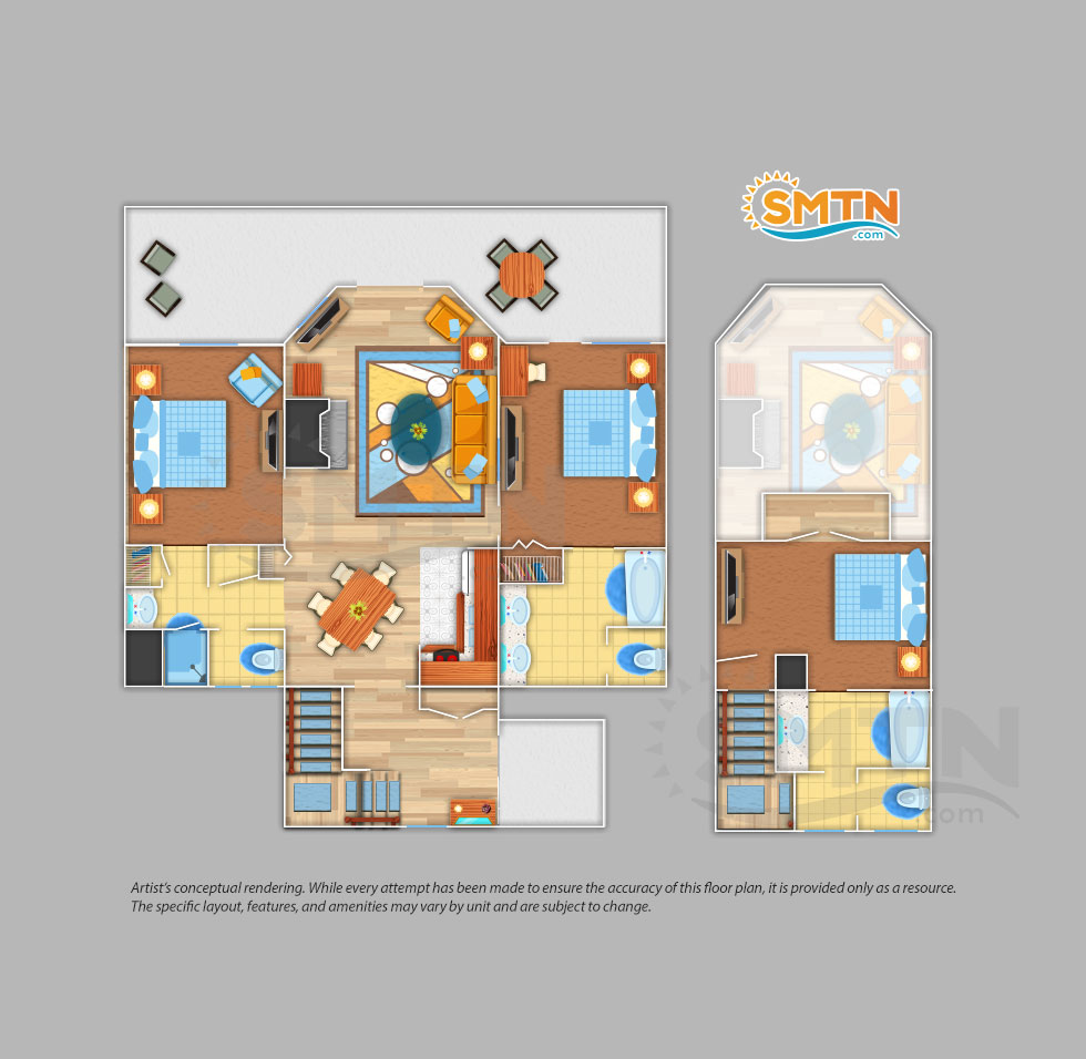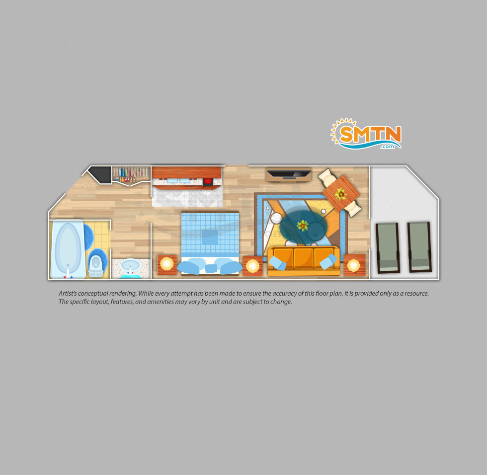 Intricate Adirondack-style architecture makes for a cozy cabin stay in one of their studio, one, two, or three-bedroom units. Plenty of space to sprawl out and relax while enjoying beautiful mountain and lake views from your private balcony. And you'll love the freshly-baked cookies delivered to your cabin daily!